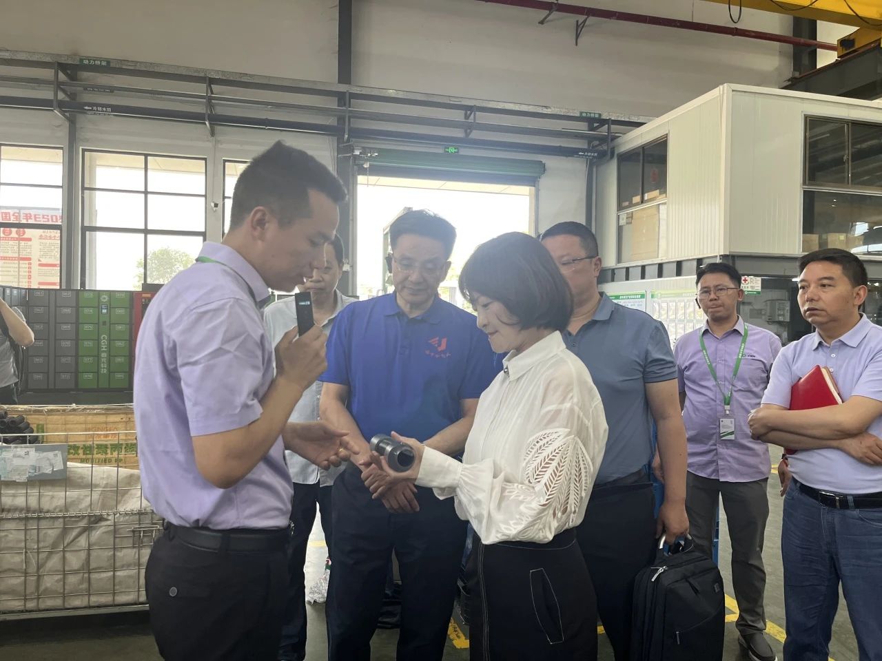 • 2023年7月4日金华市婺城区人民法院院长丁胜一行莅临汽车小镇今飞未来工厂参观交流
