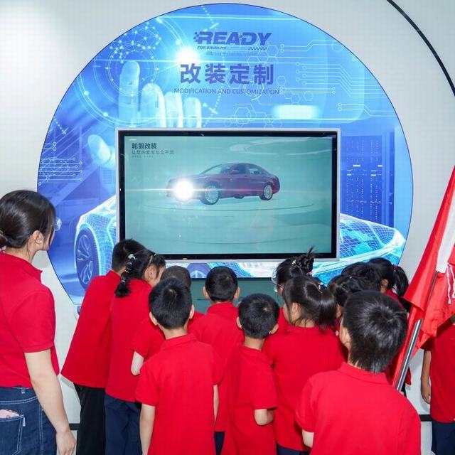 接着,葛总带领孩子们来到公司展厅,向孩子们介绍了今飞的发展历史,通过一幅幅珍贵的历史照片和实物展示,诉说着今飞历经的风雨兼程和取得的辉煌成就。从1959年的农业机械厂到1996年成立今飞机械集团有限公司,再从1998年的企业成功改制到2017年深交所成功挂牌上市。现在的今飞经过60多年的风雨,已经成为一个跨区域的制造业企业集团。参观的孩子们认真地听着葛总的介绍,驻足今飞发展中的各阶段产品,热烈地讨论着,并在展厅互动区亲自体验了汽车轮毂改装的乐趣。